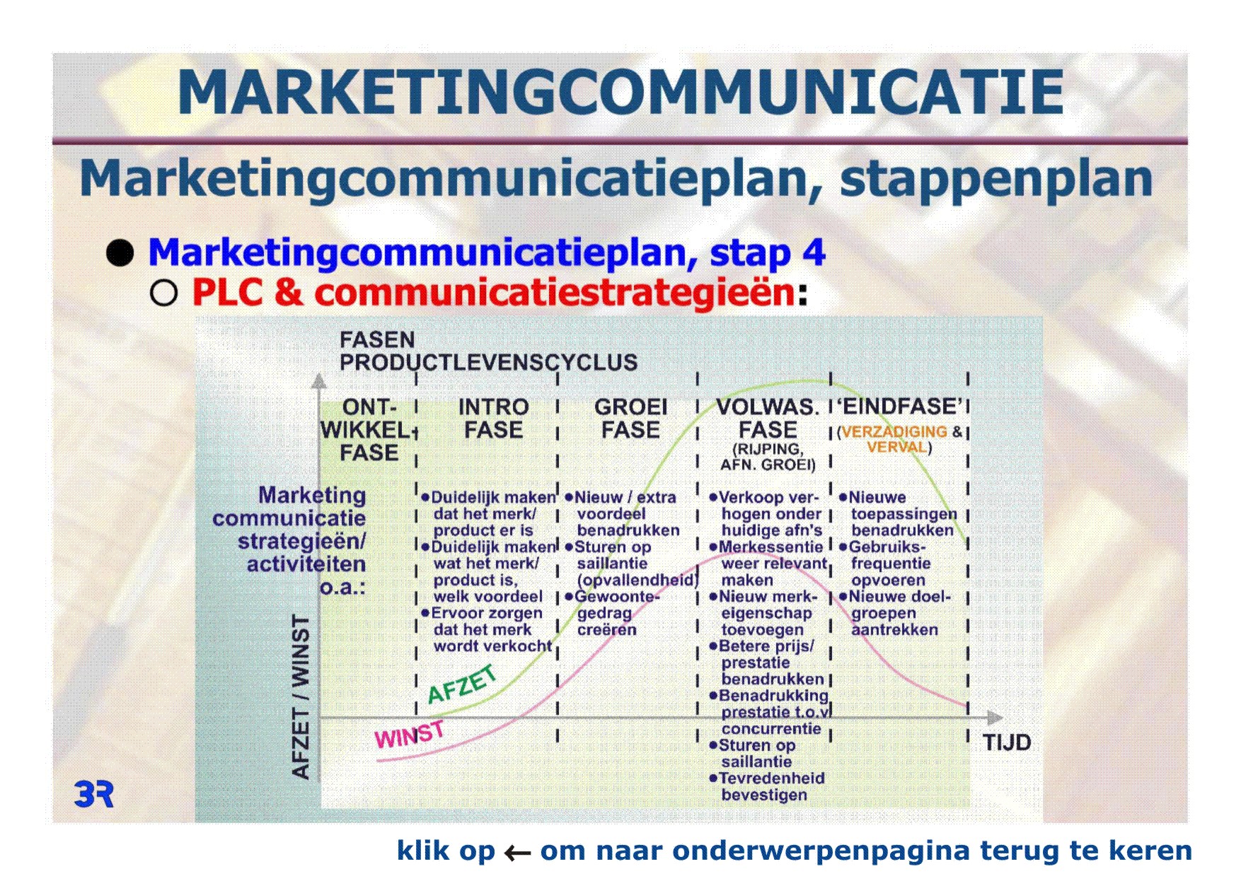 Boek: o.a. Basisboek MarketingCommunicatie E. de berg e.a. ; MarketingCommunicatieStrategie / W. van Raaij, e.a.