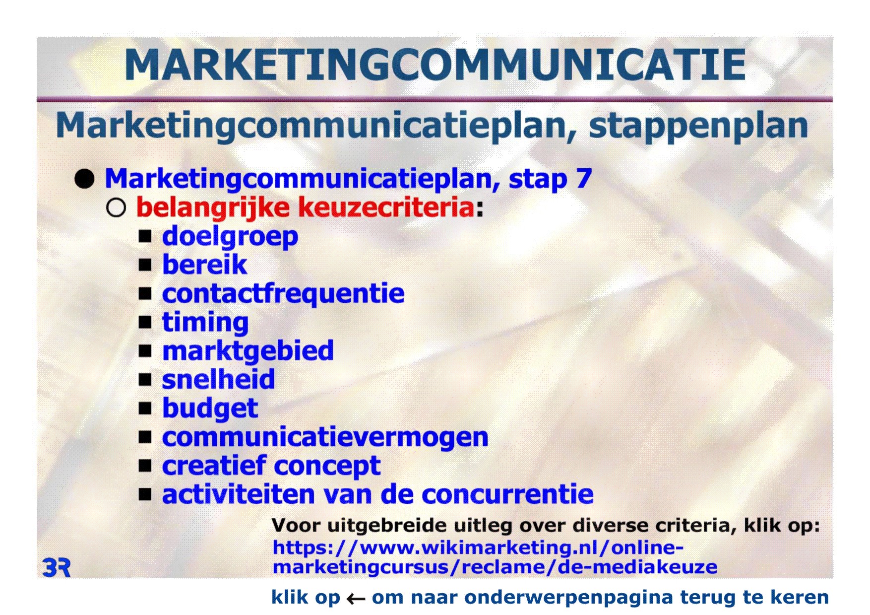 HBO / Marketing Communicatie / 05 / Onderdelen van het (strategisch) marketingcommunicatieplan.