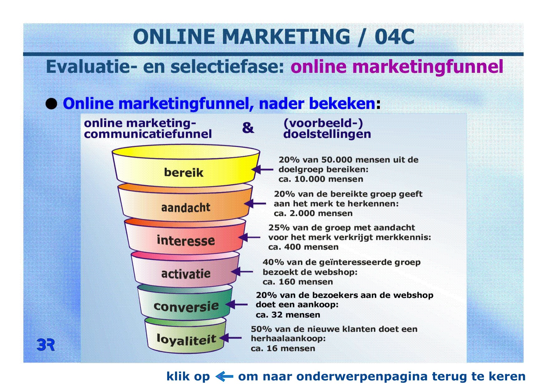HBO / Online marketing 05 / 4 en meer C's; identiteit-focus-visie; van meetbare doelstellingen naar conversie; 5-S model; conversieproces.