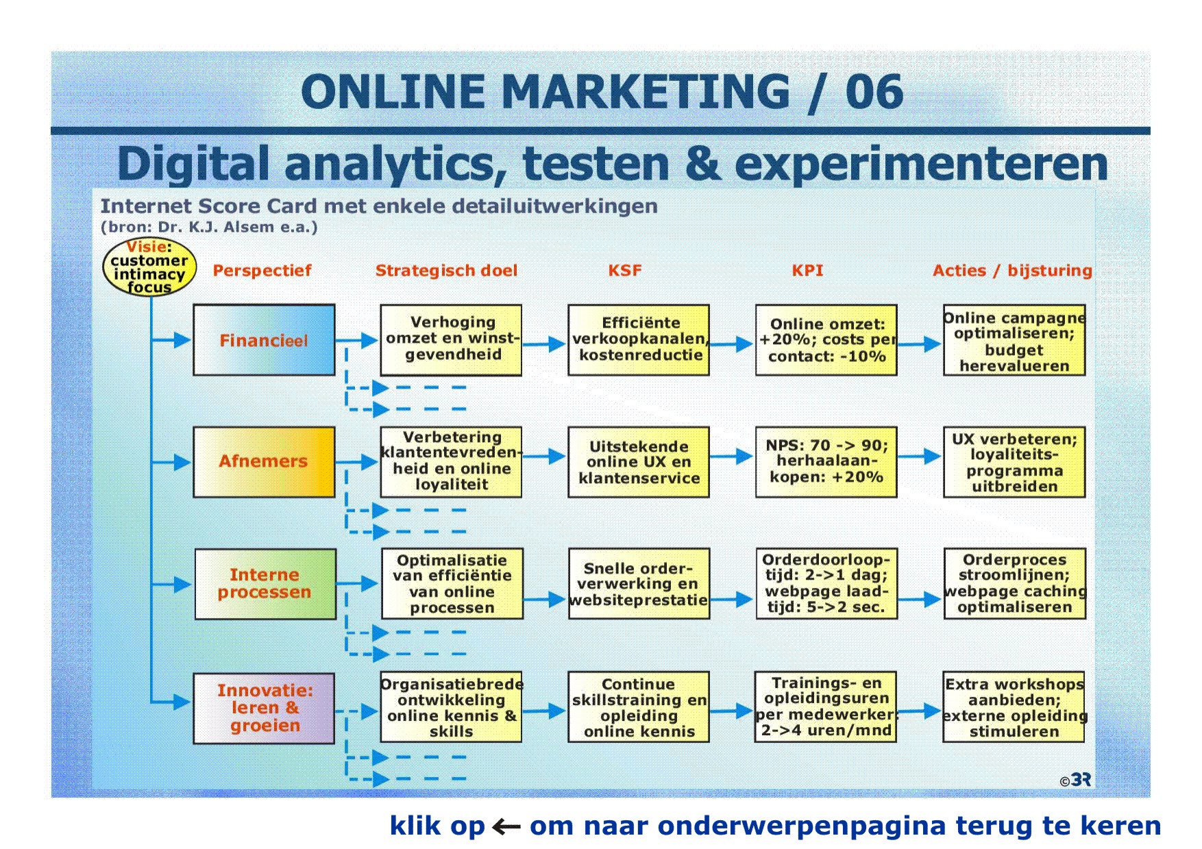 HBO / Basisboek online marketing 06B / KSF's en KPI's; digital analytics; internet scorecard; online marketingplan.